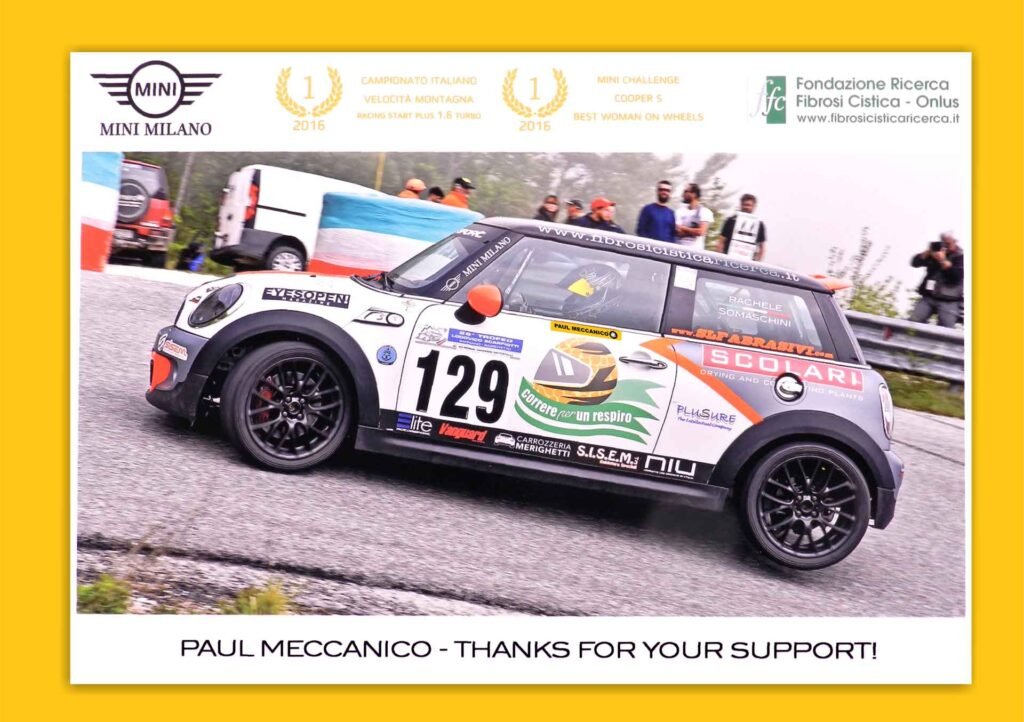 Rachele Somaschini collaborates with the Cystic Fibrosis RESEARCH FOUNDATION – ONLUS and the challenge of the twenty-two year old Rachele is to run the Italian Hill Climb Championship to promote and raise funds for the Cystic Fibrosis Foundation through the #abordoconRachele #RacingPerUnRespiro campaign.