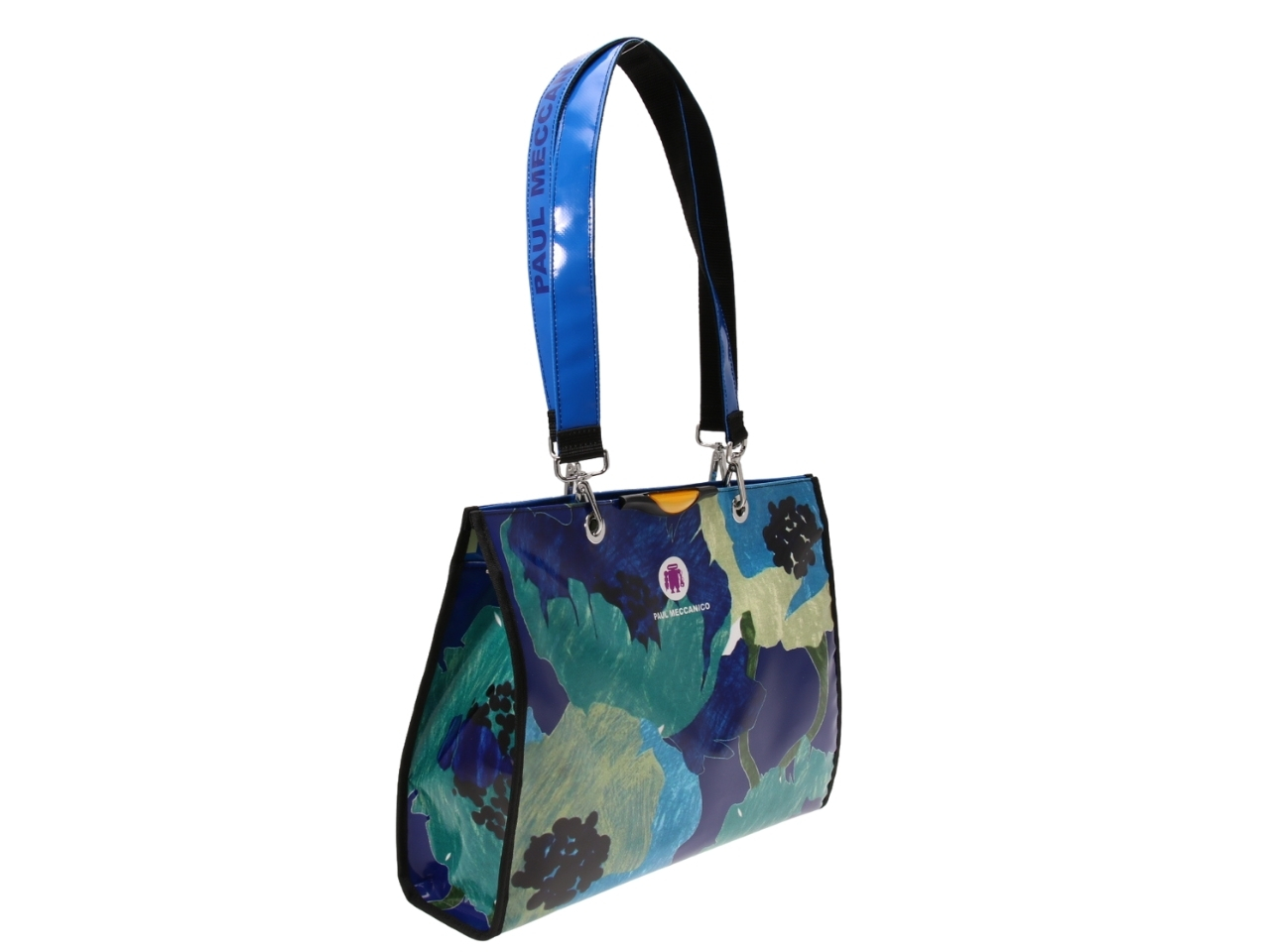 WOMAN BRIEFCASE BLACK AND WHITE FLORAL FANTASY. MODEL KART MADE OF LORRY TARPAULIN.