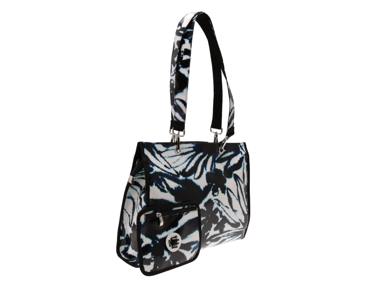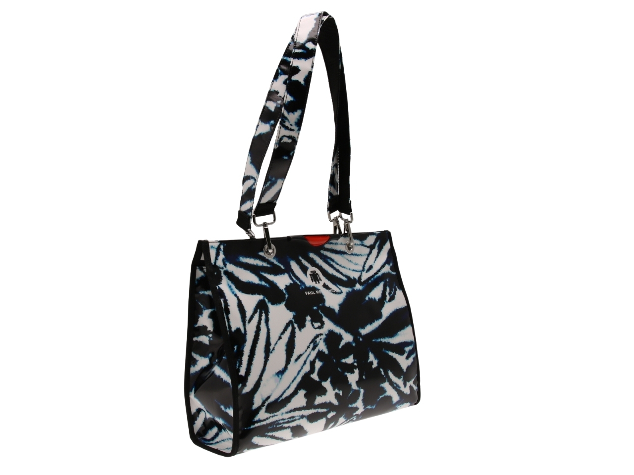 BLACK AND WHITE SHOPPER BAG WITH TIE DYE FANTASY. MODEL PEPE MADE OF LORRY TARPAULIN