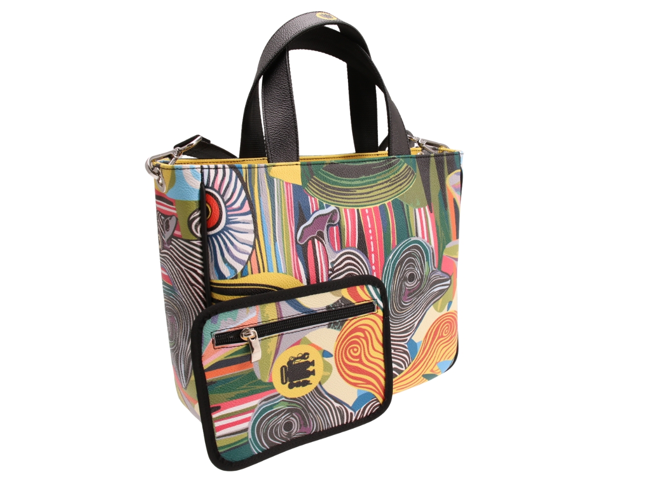 MULTICOLOR TOTE BAG WITH ABSTRACT FANTASY. MODEL GLAM MADE OF HAMMERED VEGAN LEATHER