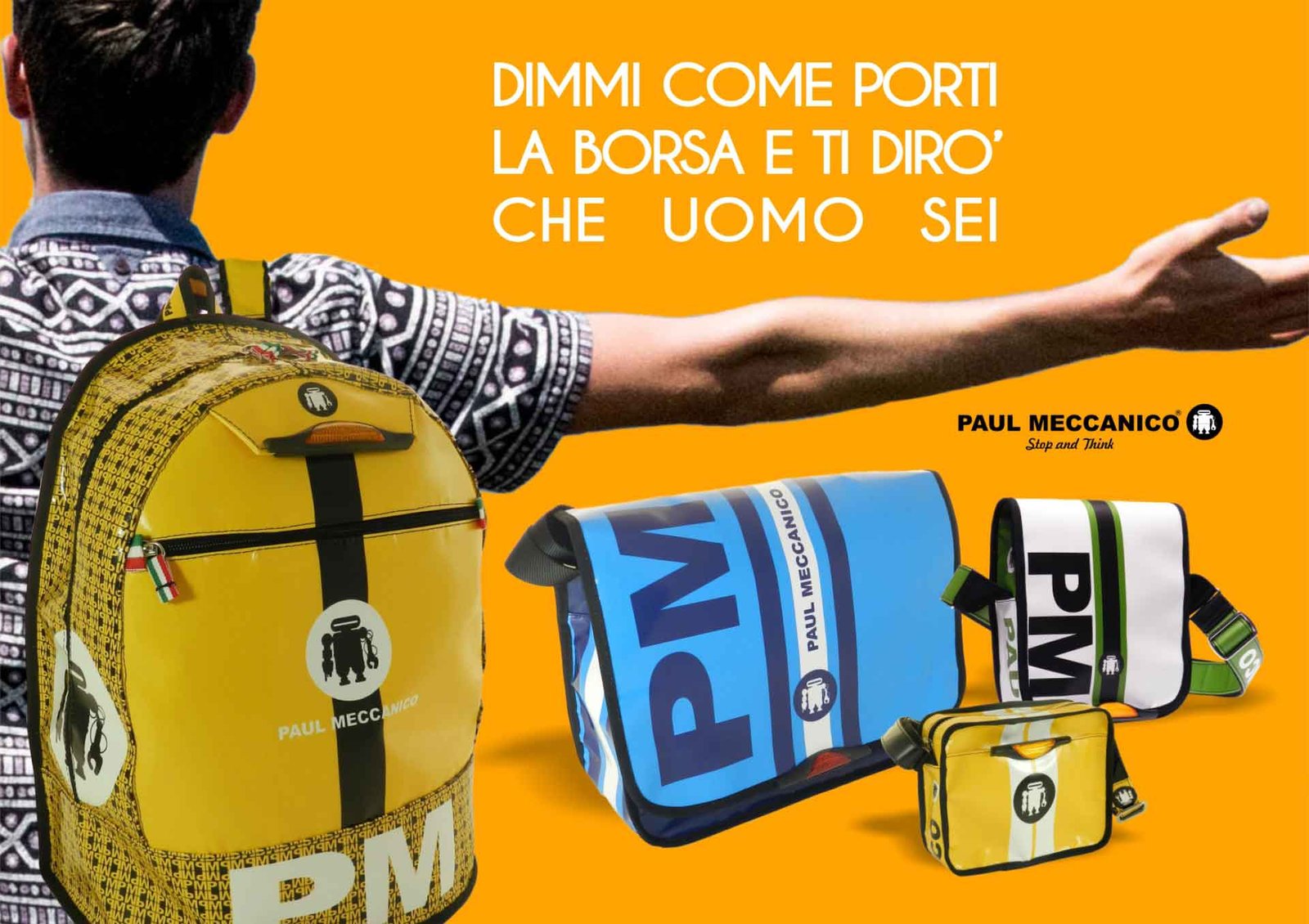 “The name is simply Paul’s alter ego and to this we added Meccanico, to associate the idea of the workshop as we are, after all. The idea was still a bit crude and unpatented. But we were understanding that that name combined with that product could work because it was a one-of-a-kind piece and liked it. Obviously we worked on it in our spare time, what full time work allowed us to dedicate. Then we started using other materials and so they were born with the truck tarpaulin and the logo. “