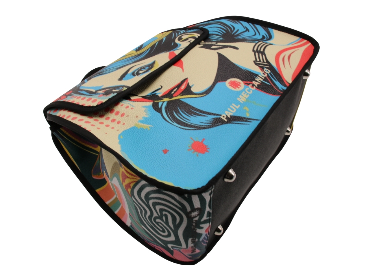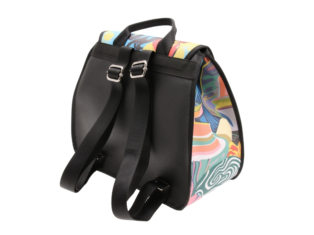 BLACK AND WHITE WOMEN’S “BACK BAG” WITH ANIMALIER FANTASY. MODEL PULP MADE OF LORRY TARPAULIN.