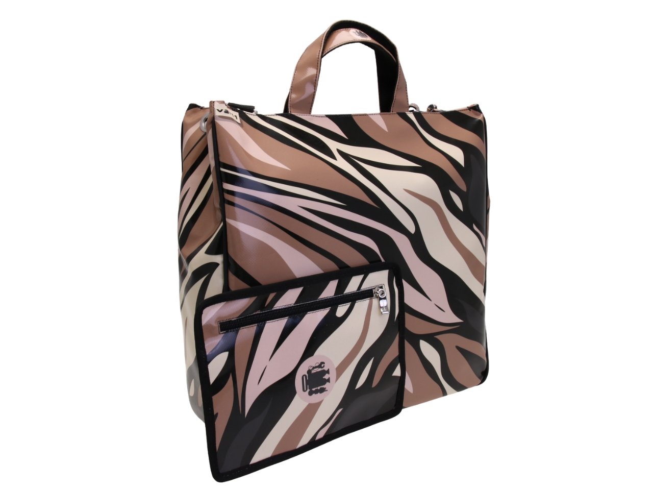 - Inside: Features the principal spacious main compartment with a signature removable zip-pouch, 1 zip compartment, 1 velcro compartment.