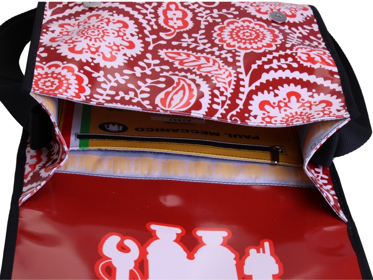 - Inside: The spacious main internal compartment, 1 zip pocket and 1 velcro pocket.