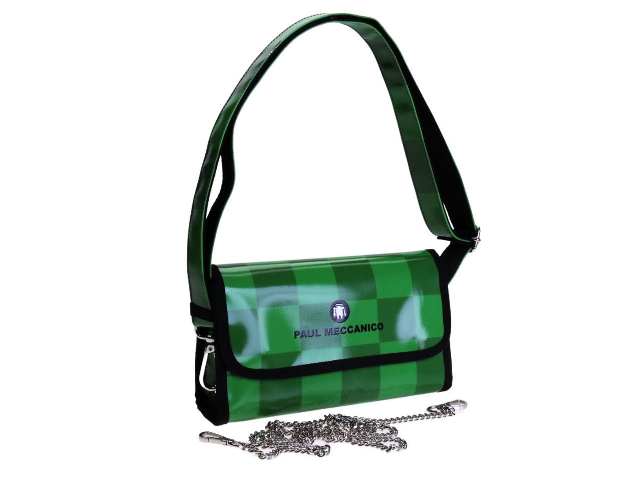 - Versatility:Designed as a shoulder or handheld clutch or an internal organizer. Includes an adjustable and removable shoulder strap of truck tarp as well as chain shoulder strap