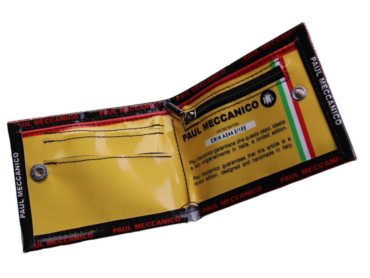 The CRIK (12 x 9,5 cm) is a folding wallet defined by its slim silhouette and industrial truck-tarp construction. Designed for durability and efficiency, it provides a waterproof home for currency and cards in a refined, small-batch frame. This is a Edizione Limitata; a narrow, numbered series handcrafted in Italy.