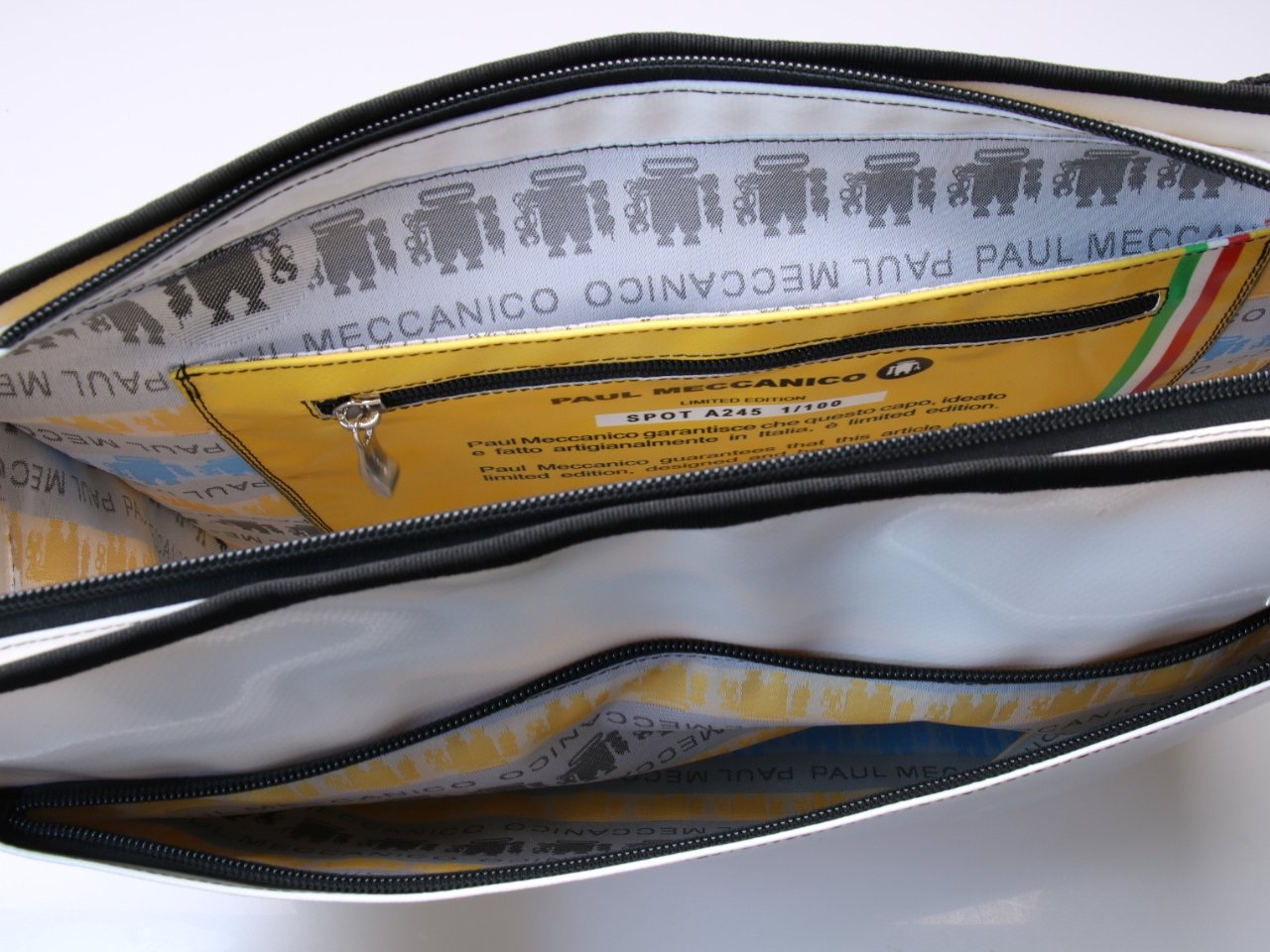 The SPOT is a 14-liter (40W x 12D x 30H cm) messenger defined by its balanced horizontal geometry and substantial build. Designed for professional routine, its structured, waterproof frame provides a protective vault for your tech while showcasing an exclusive, limited-edition graphic. It offers ample space for daily work essentials -fits up to a 15” or 16” laptop, documents, chargers, and a jacket. This is a Edizione Limitata; each piece belongs to a numbered series handcrafted in our Italian ateliers.