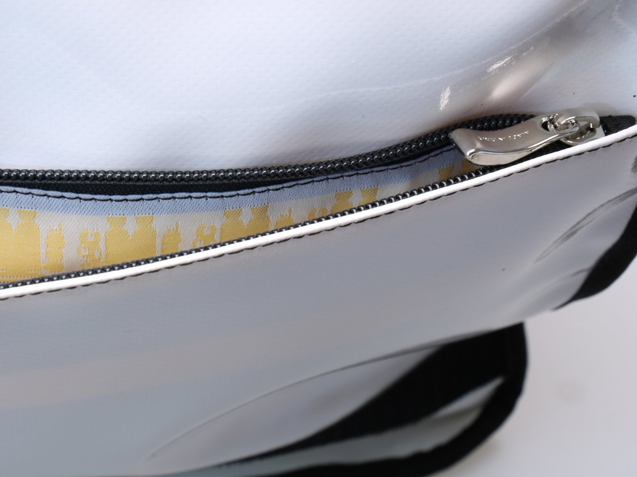 - Inside: The main internal compartment with 2 internal pockets (1 zip, 1 velcro) and 1 external zip pocket.